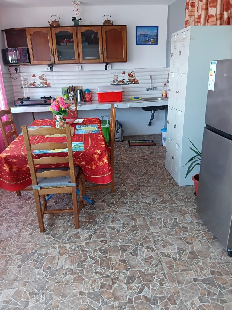 Cuisine avec micro-ondes, réfrigérateur, assiettes, couverts et glacières à disposition pour vos repas ou vos pique-niques