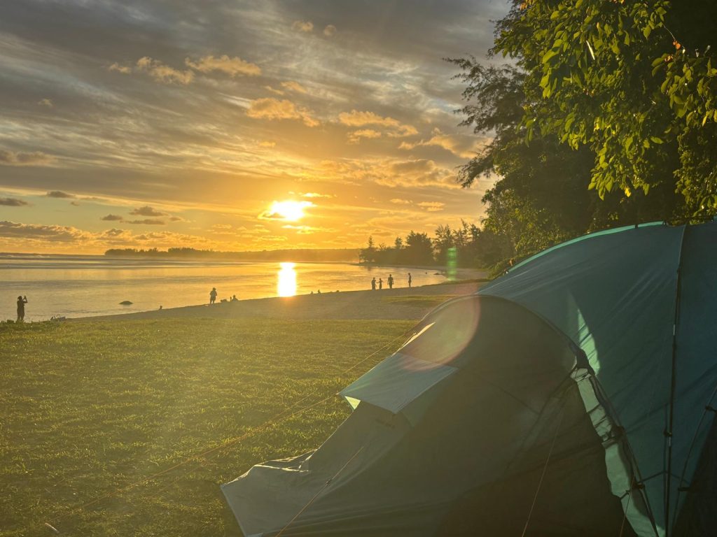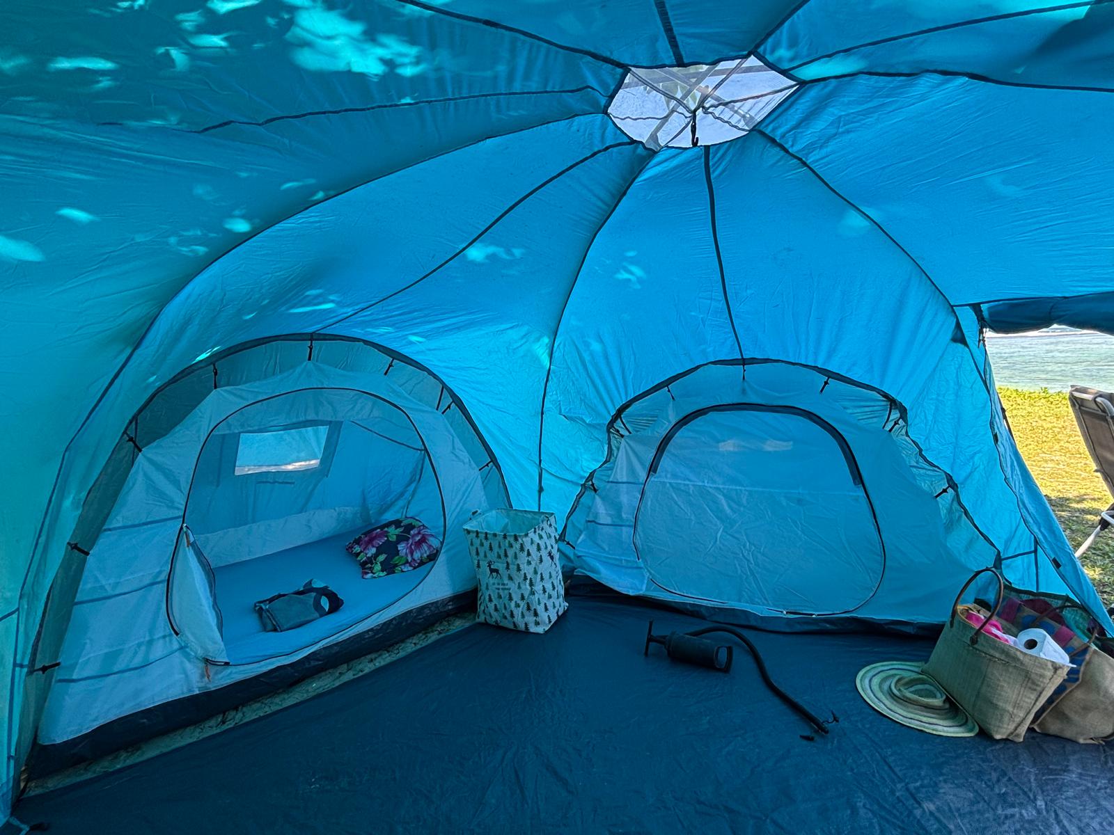 À disposition des vélos électriques et une grande tente pour camper sur la plage.